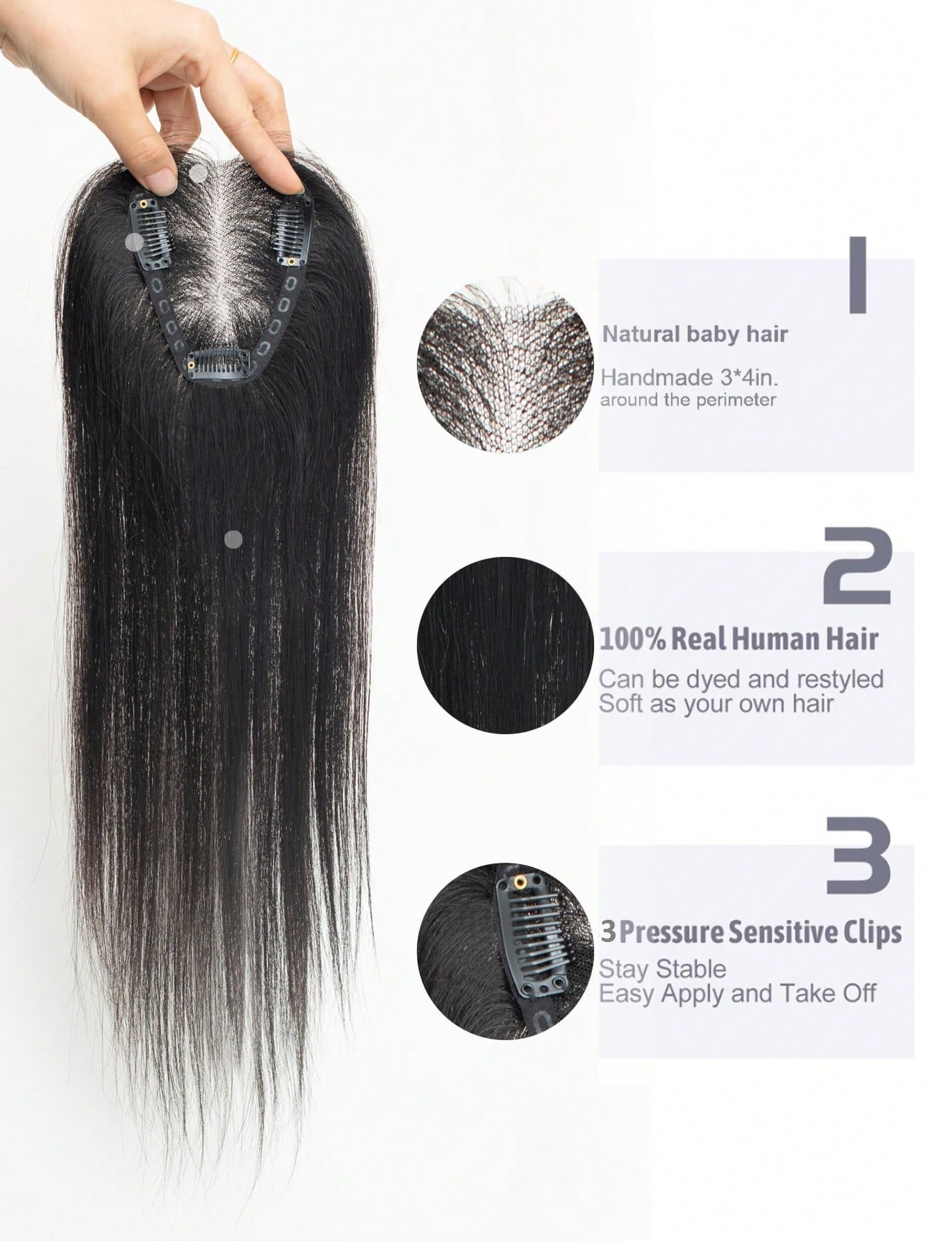 8 reviews for 100% Real Human Hair Toppers for Women Clip in Real Hairpieces, Breathable MONO Base for Covering Grayish Thinning Hair 1B Black