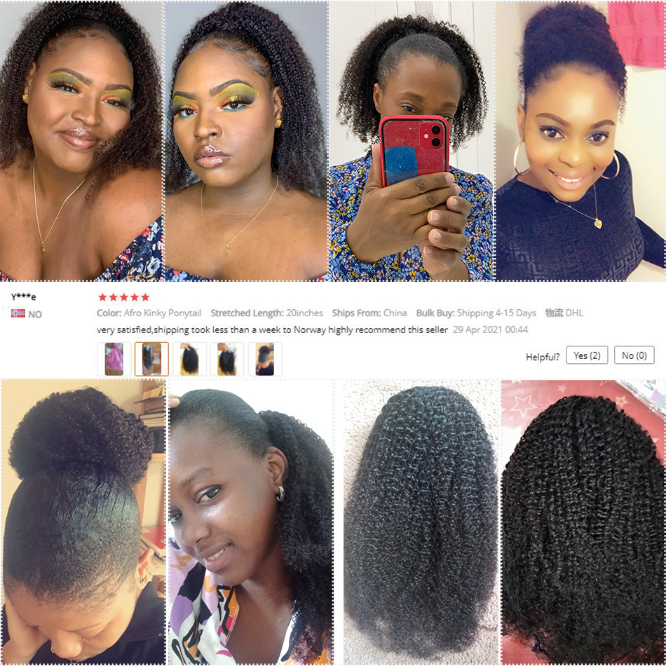 9 reviews for Alibele Mogolian Afro Kinky Curly Drawstring Ponytail Human Hair Extensions 4B 4C Remy 10-28inch Long Clip In Ponytail Extension