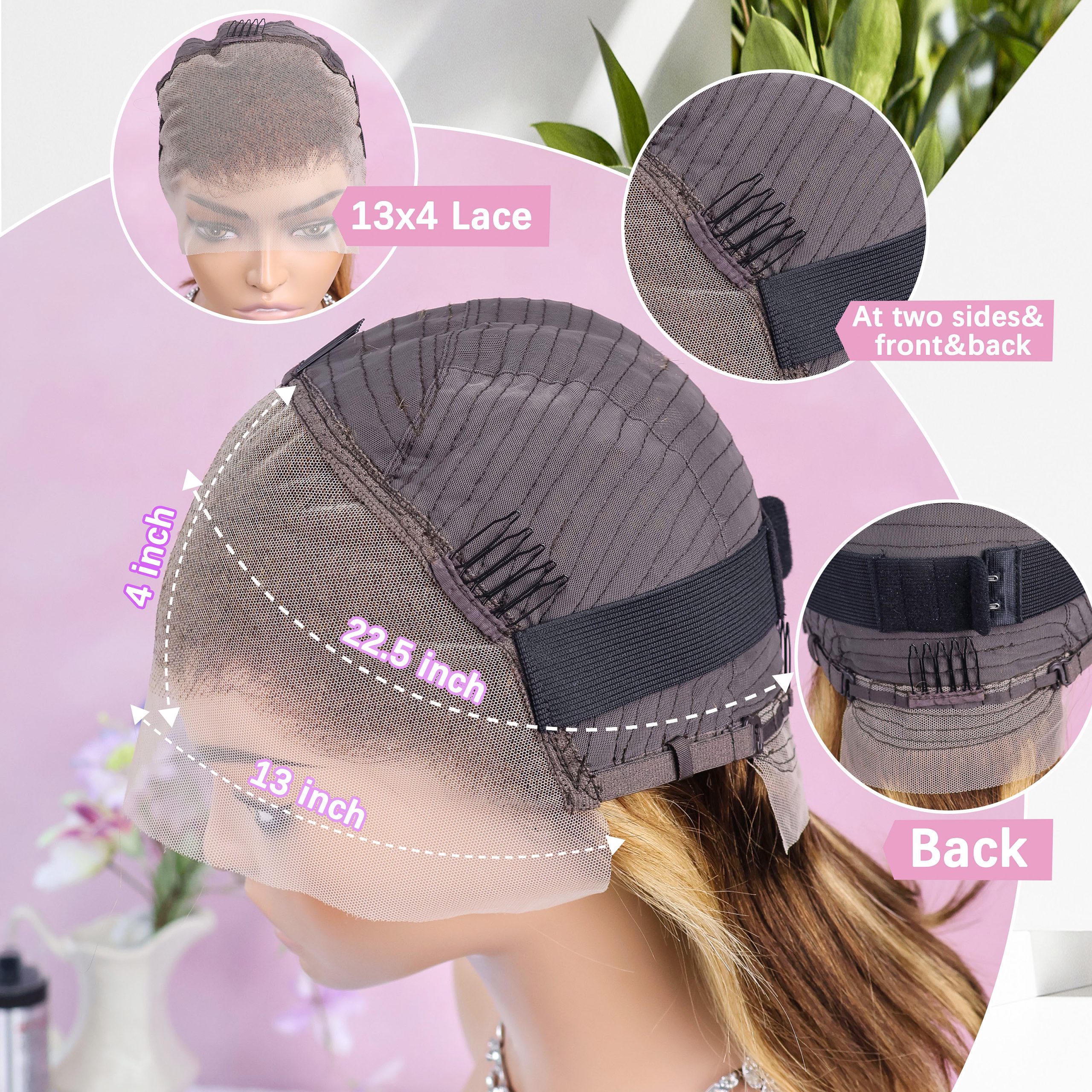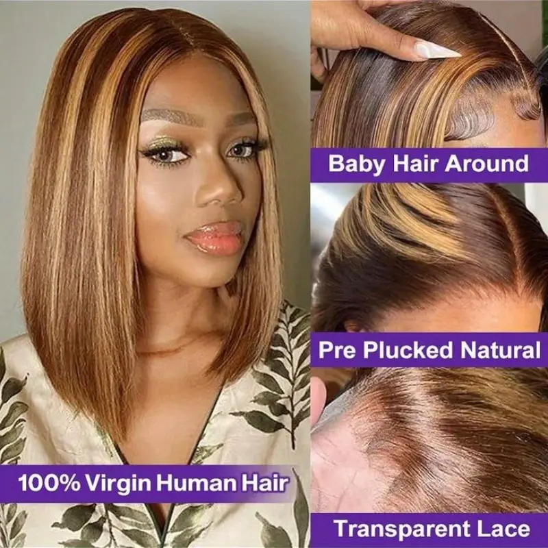 9 reviews for Bob Straight Wig Highlight Ombre 200%Density 13×4 HD Lace Front Wigs 4/27 Honey Blonde Brazilian Wig Human Hair 100% Pre Plucked