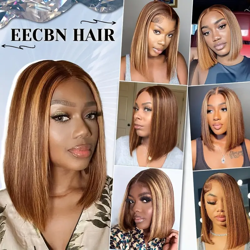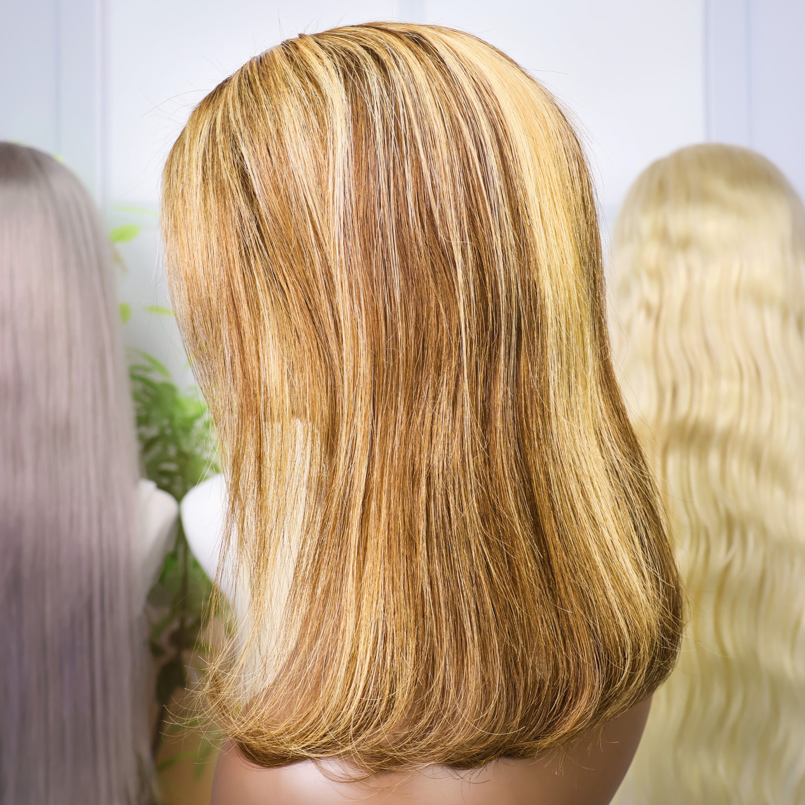 Color: Highlight 4/27 Brown Blonde Color Straight Bob Wig
