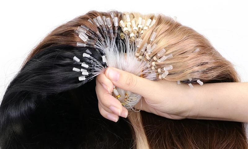 6. Using a hair plier to tight micro ring, keep 3-5 seconds.
