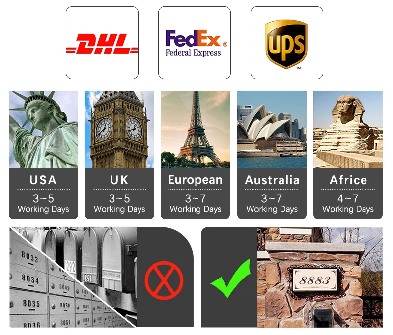 Now My company mainly cooperates with DHL and Armax company. If you need FedEx/UPS/TNT, Contact us before you make the payment.