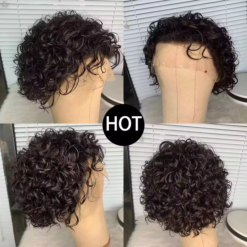 8 reviews for Pixie Cut Wigs Human Hair Short Curly Lace Front Human Hair Wigs Water Wave Bob Wig 13×1 Transparent Lace Wigs For Women