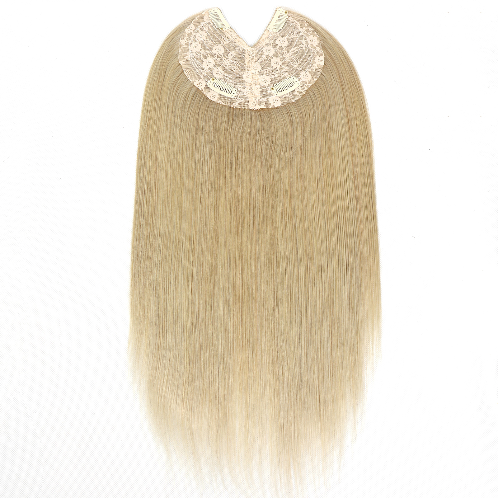 9 reviews for V-Part Human Hair Toppers For Women Breathable Lace Base Blonde Highlight Invisible 4 Clips Hairpiece With Thinning Hair 16Inch